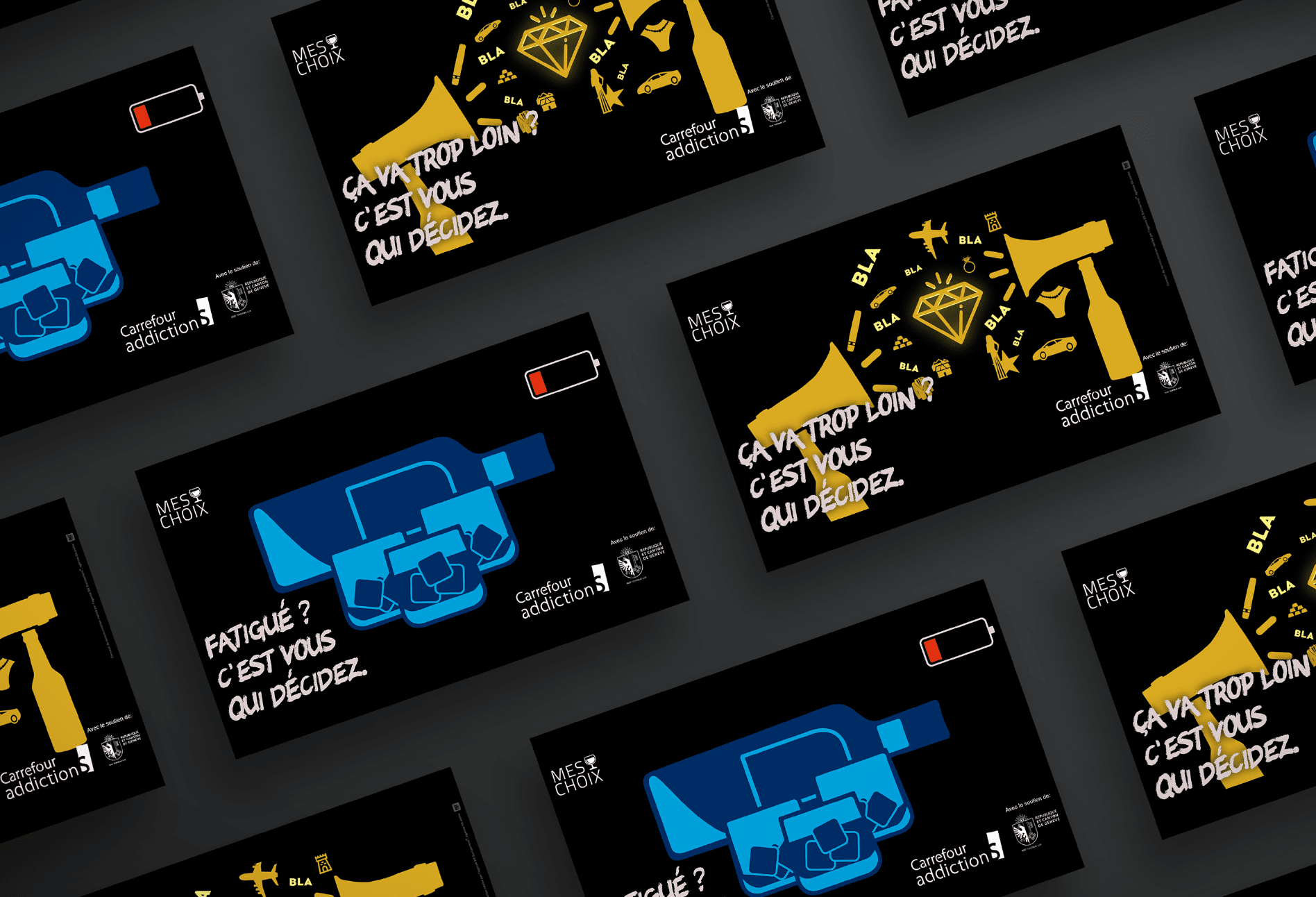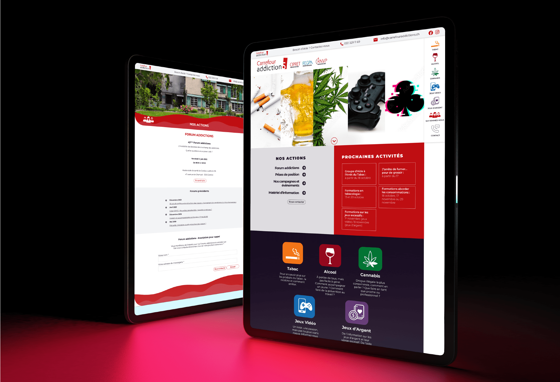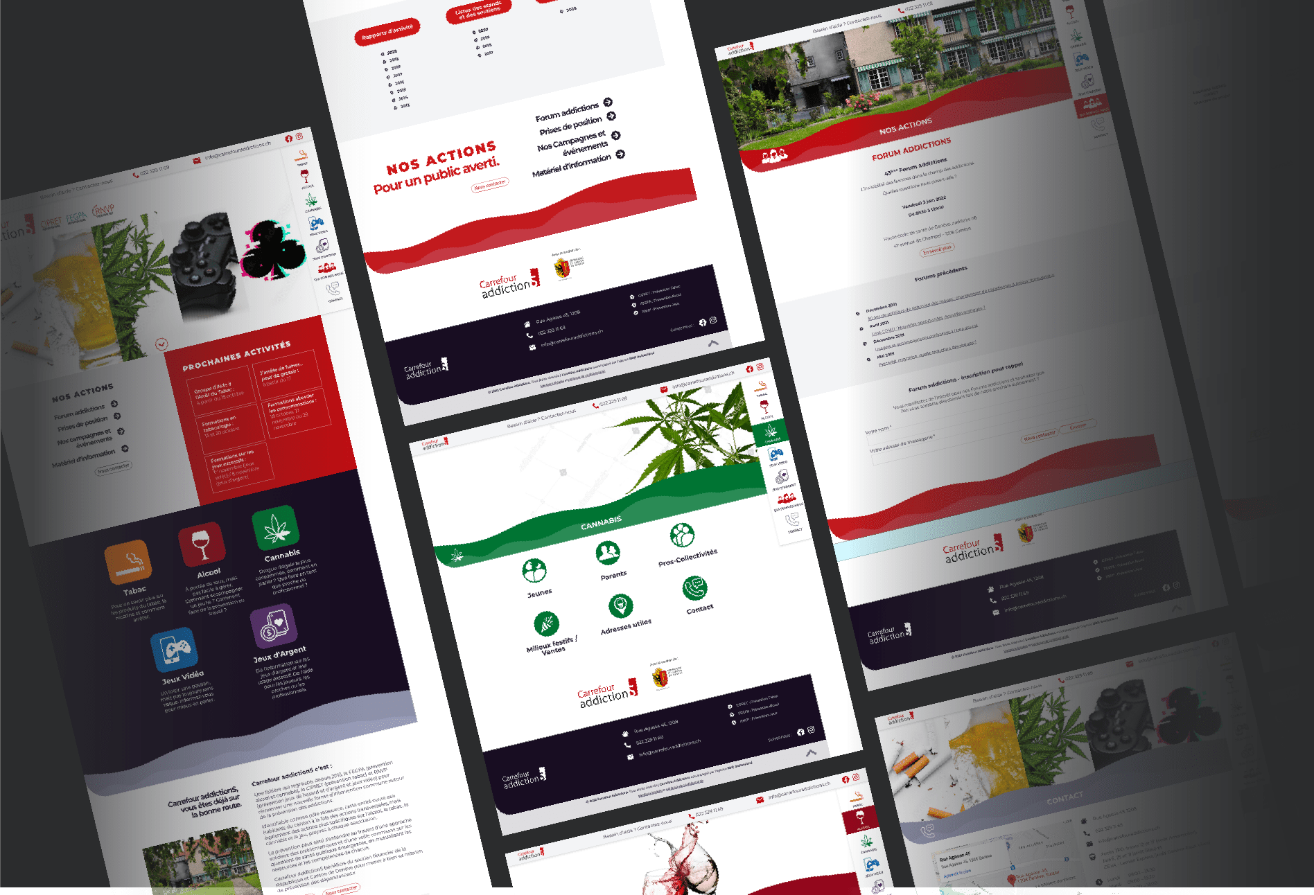 Tout d'abord, nous avons été mandaté pour créer différentes campagnes publicitaires digitales de prévention contre l’addiction aux jeux d’argent, aux paris sportifs et contre les principales addictions chez les adolescents. Dans un deuxième temps et afin d’actualiser leur communication digitale ainsi que le parcours consommateur, Carrefour addictionS nous a mandaté pour une refonte totale de leur site web, il sera mis en ligne au courant du premier trimestre 2023.